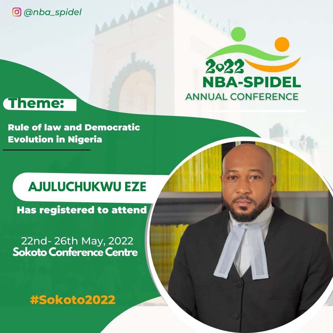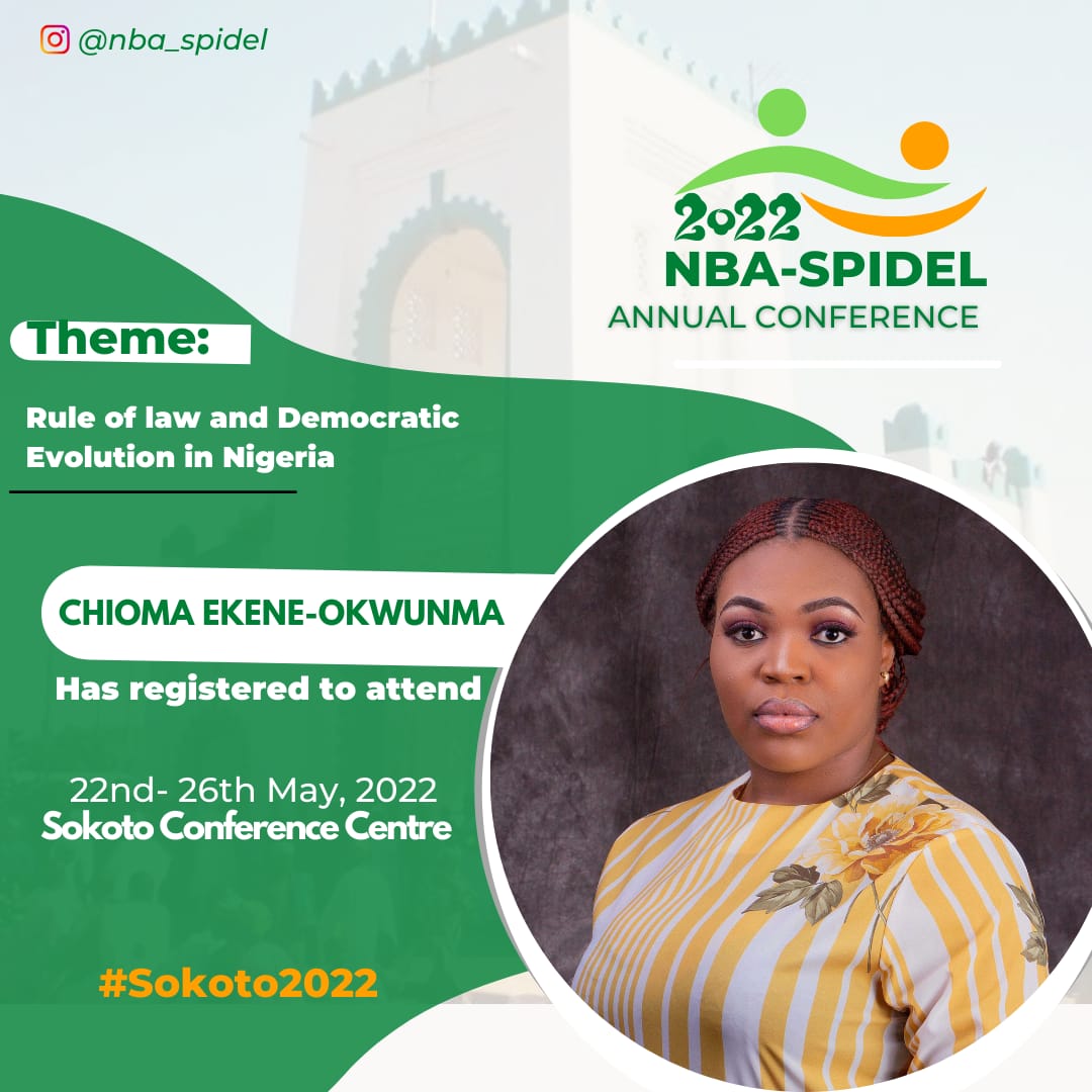 You are specially invited to participate in the Annual Conference of the Section on Public Interest and Development Law of the Nigerian Bar Association (NBA-SPIDEL), which will take place from the 22nd -26th May 2022 at the Sokoto Conference Centre, Sokoto, Sokoto State. The theme of the conference is “Rule of Law and Democratic Evolution in Nigeria.”